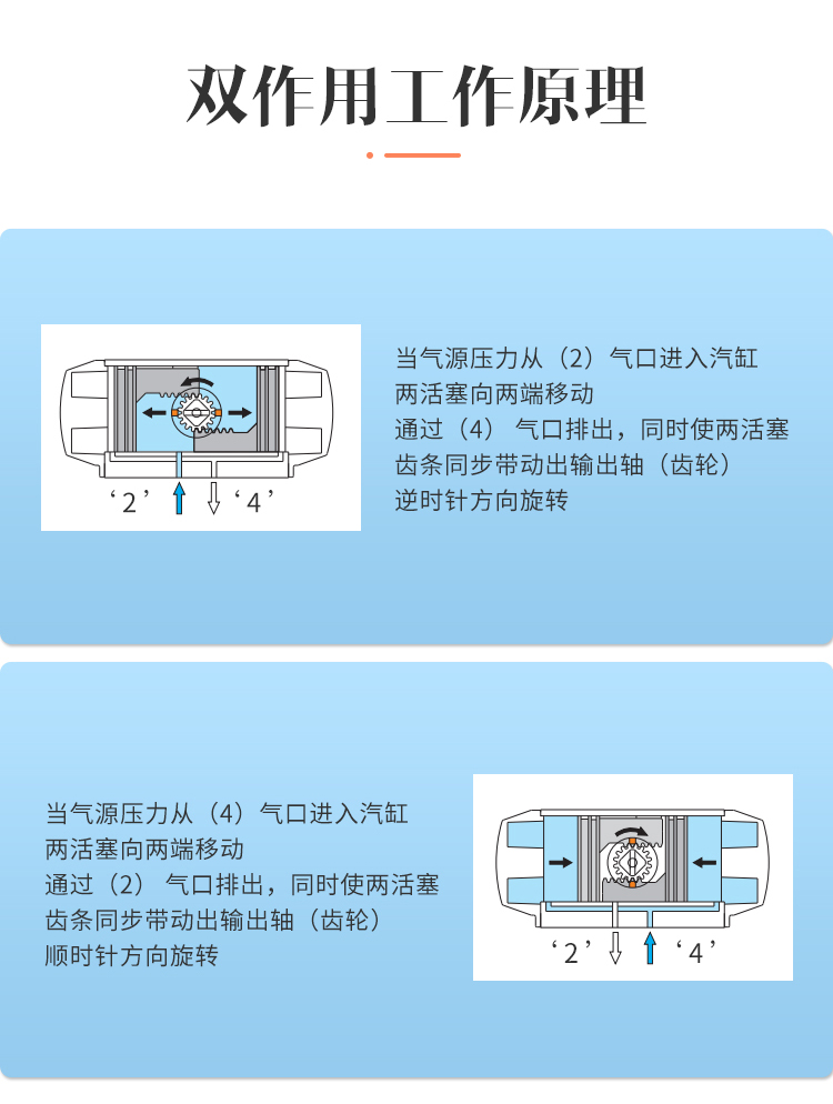 氣動對夾蝶閥,蝶閥配上氣動執行器。氣動執行器的執行速度相對較快,并且不需要工人親力親為,在很大程度上節約了人力資源以及時間。蝶閥的蝶板安裝于管道的直徑方向。在蝶閥閥體圓柱形通道內,圓盤形蝶板繞著軸線旋轉,閥門初始位置根據實際需求而定,當閥門由初始位置旋轉90°后即為一個動作結束(由開到關,或由關到開),反之為另外一個動作(由關到開,或由開到關)結束。 二、氣動對夾式蝶閥主要特點 1、設計新穎、合理、結構獨特,重量輕,啟閉迅速。 2、密封件可以更換,密封性能可靠達到雙向密封零泄漏。 3、密封材料耐老化、耐腐蝕,使用壽命長等特點。 4、兩截式閥桿無銷連接,結構簡單緊湊,維修方便。 5、閥座密封與靠背一體結構,減少閥座變形量。 6、閥桿軸向定位裝置,增強密封性、減少閥門扭矩。 7、可以任何位置安裝,維修方便。 三、工作原理 氣動蝶閥是用隨閥柑轉動的圓形蝶板做啟閉性,以實現啟用動作的氣動閥門主要做截斷閥使用,亦可設計成具有調節或段閥兼調節的功能,目前碟閥在低壓大中口徑管道上的使用越來越多。